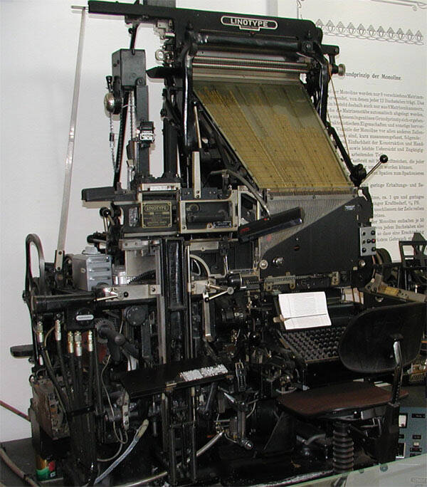 La Linotype voit le jour en 1884, grâce à l’ingéniosité d’un inventeur germano-américain : Ottmar Mergenthaler. Originaire d'Allemagne, Mergenthaler s’installe aux États-Unis et développe une machine qui allait transformer radicalement la composition typographique. Son invention fut qualifiée par Thomas Edison de « huitième merveille du monde ».